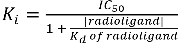 Ki = the affinity of the competing ligand for the receptor(s) present(the ‘i’ indicates the affinity value was determined from a competition (inhibition) binding study)